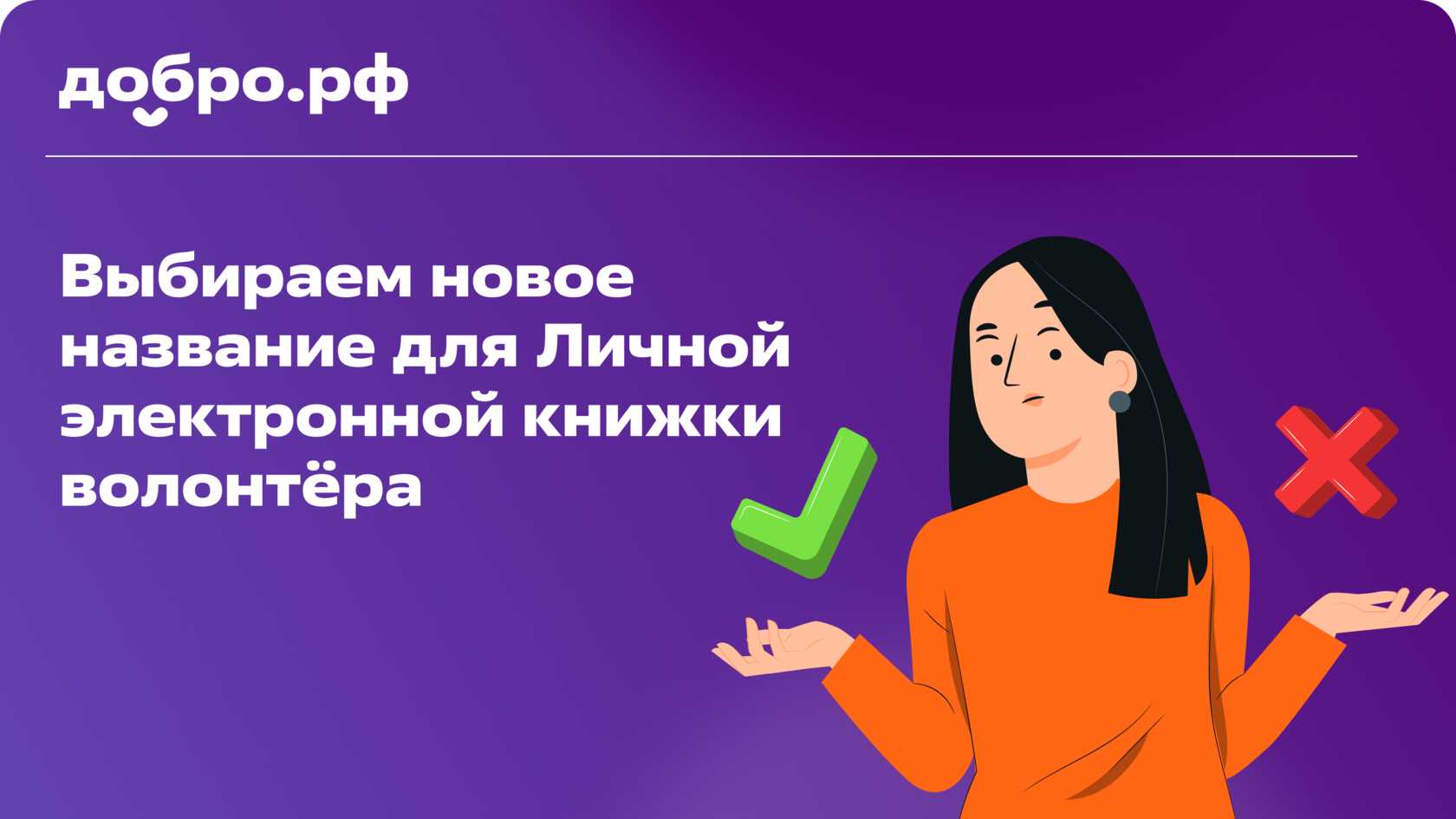 Мы предлагаем вам выбрать или предложить свои варианты нового названия для Личной электронной книжки волонтёра, где будут сохраняться все ваши добрые дела.