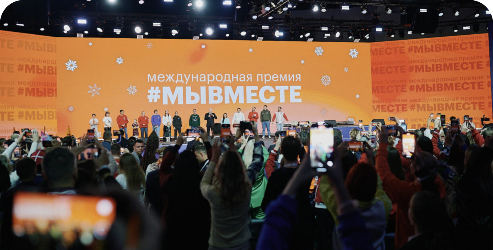- Церемония награждения победителей Международной Премии #МЫВМЕСТЕ и вручение номинации «Волонтёр Года»;