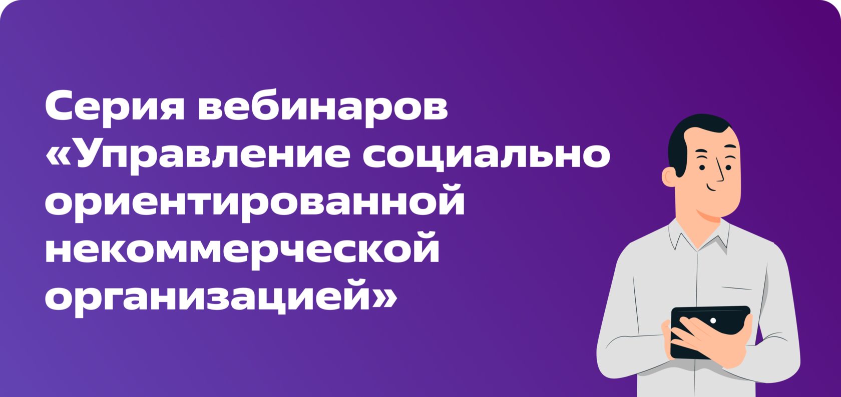 | Откройте письмо, чтобы узнать подробности | | | | Серия вебинаров «Управление социально ориентированной некоммерческой организацией» | | | | Приглашаем к прохождению серии вебинаров, которые помогут вам освоить ключевые аспекты управления некоммерческой организацией.