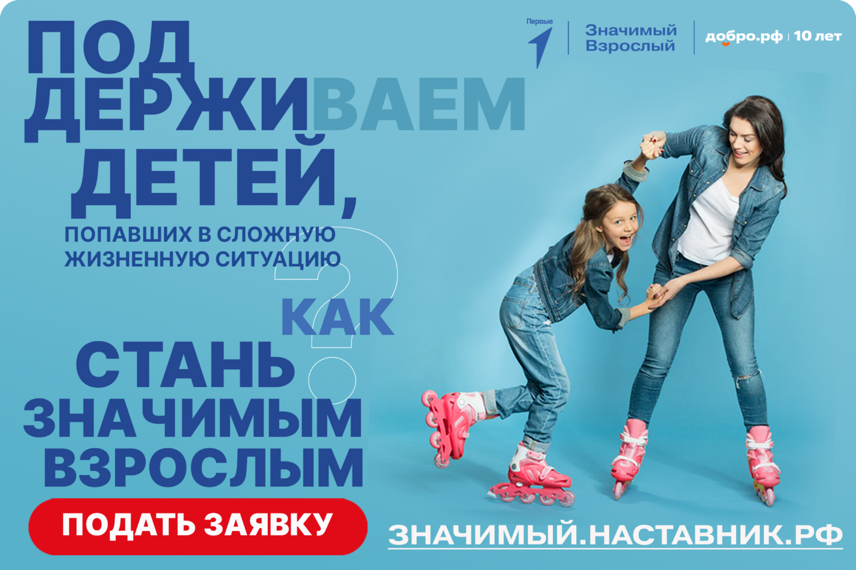 | Приглашаем стать наставником для ребенка, оказавшегося в сложной ситуации! | | | | Каждому подростку важно видеть живой пример взрослого, на которого хочется равняться. Особенно актуален такой ориентир для детей, находящихся в трудной жизненной ситуации.