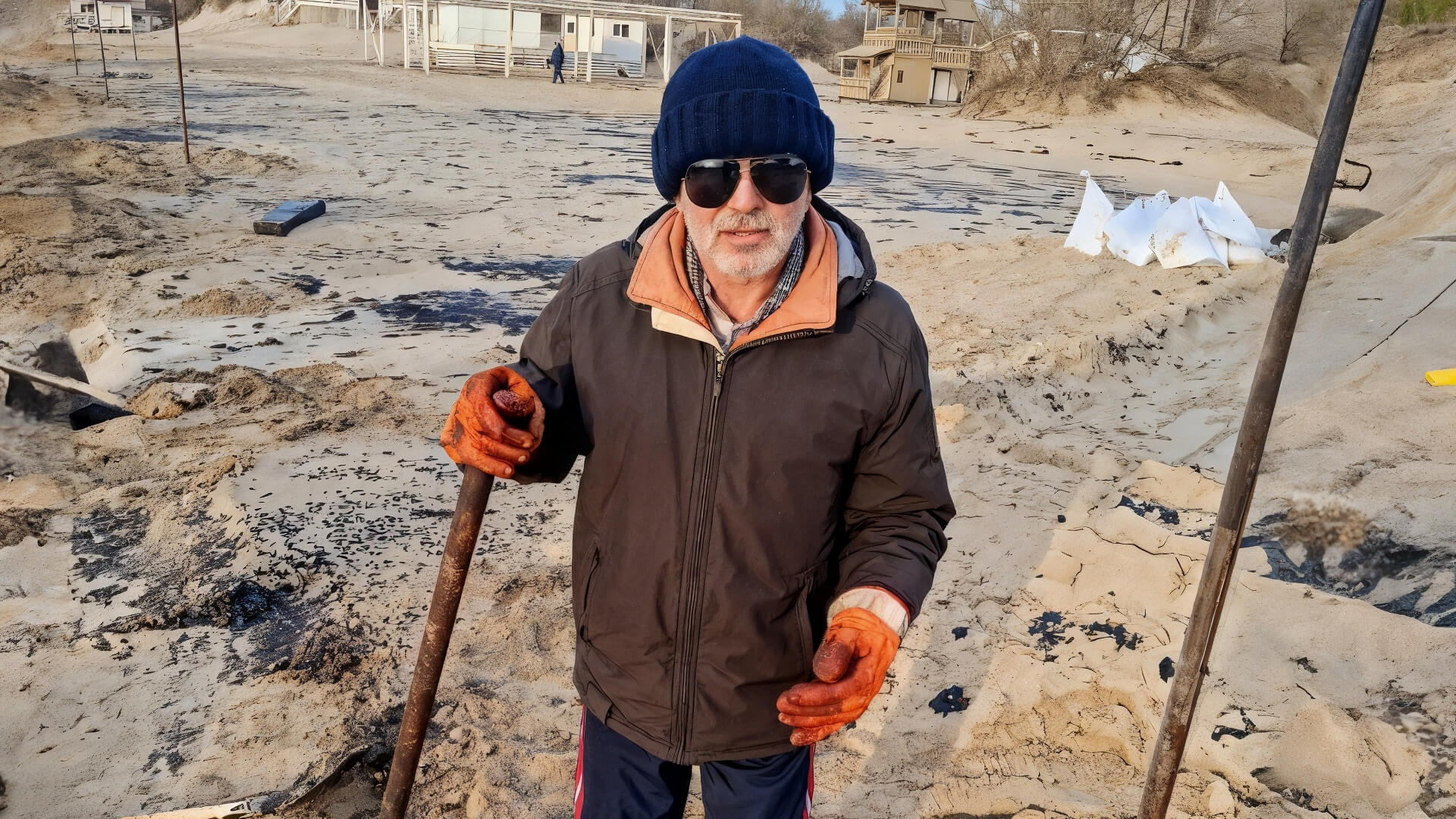 «Буду помогать до конца»: пенсионер, который пережил несколько катаклизмов, убирает мазут в зоне ЧС