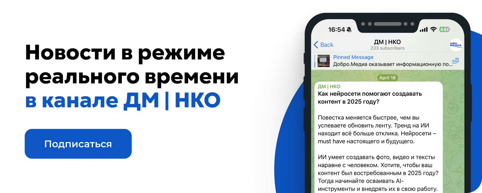 Мы запустили бесплатную информационную поддержку для некоммерческих организаций. Это отличная возможность рассказать о ваших проектах, событиях и инициативах широкой аудитории.